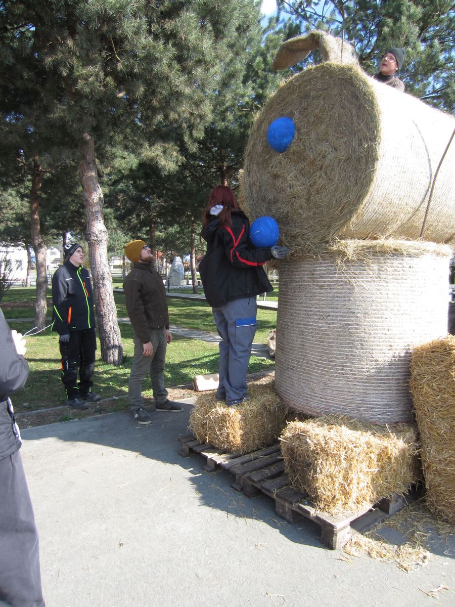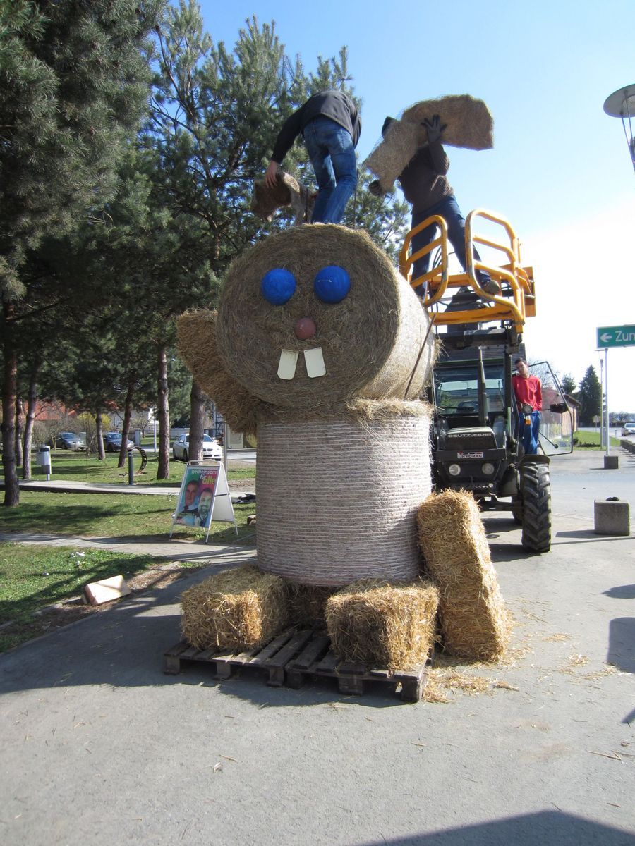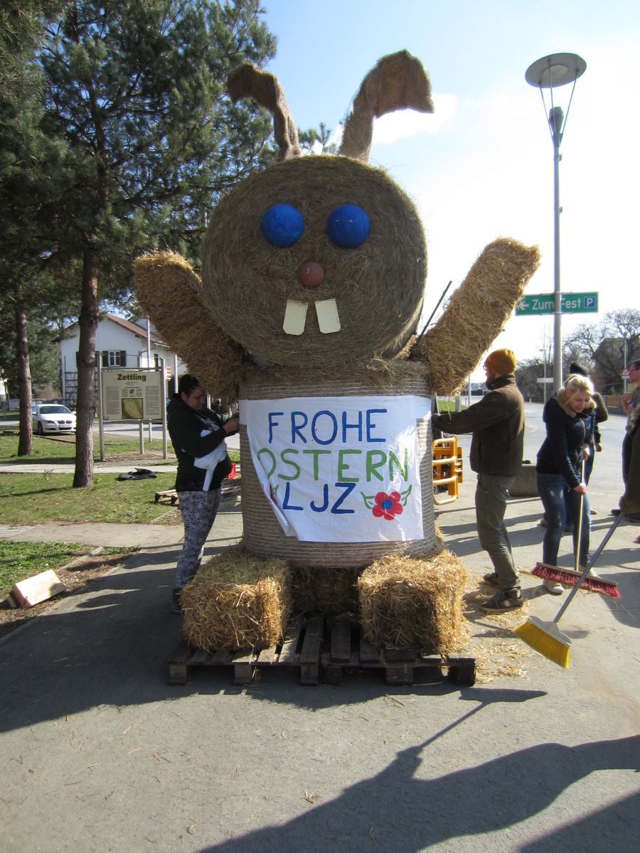 Osterkreuz und Osterhase aufstellen