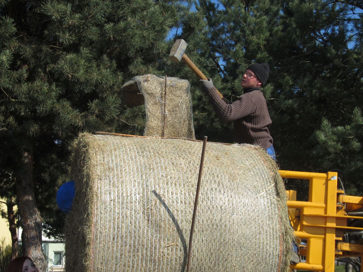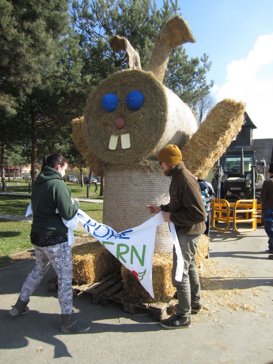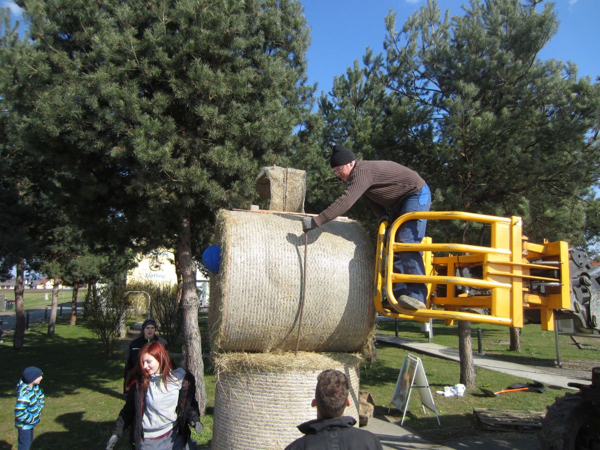 Osterkreuz und Osterhase aufstellen